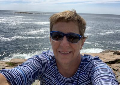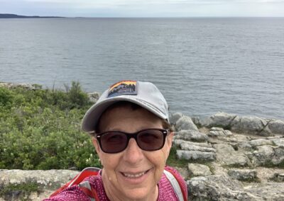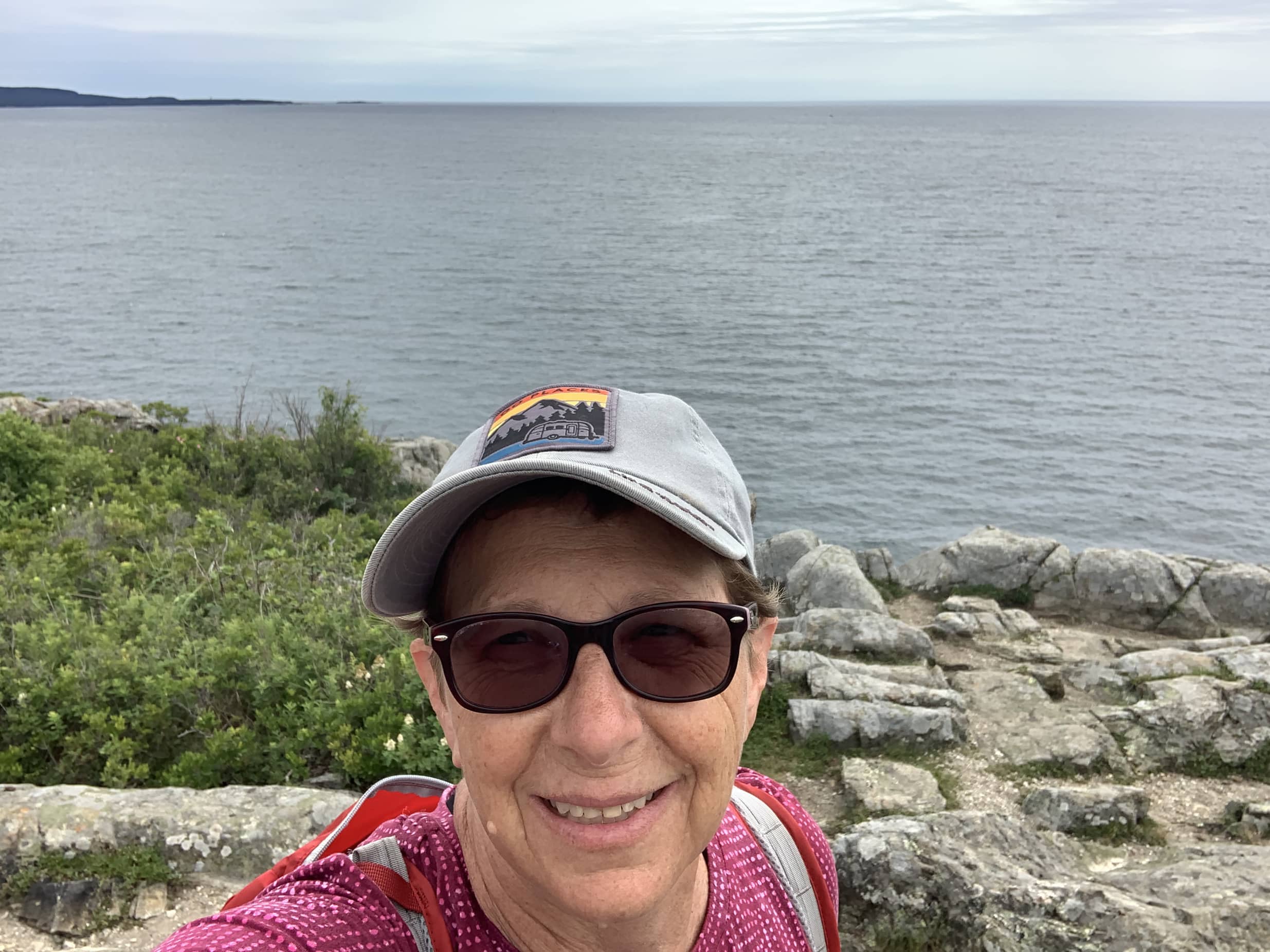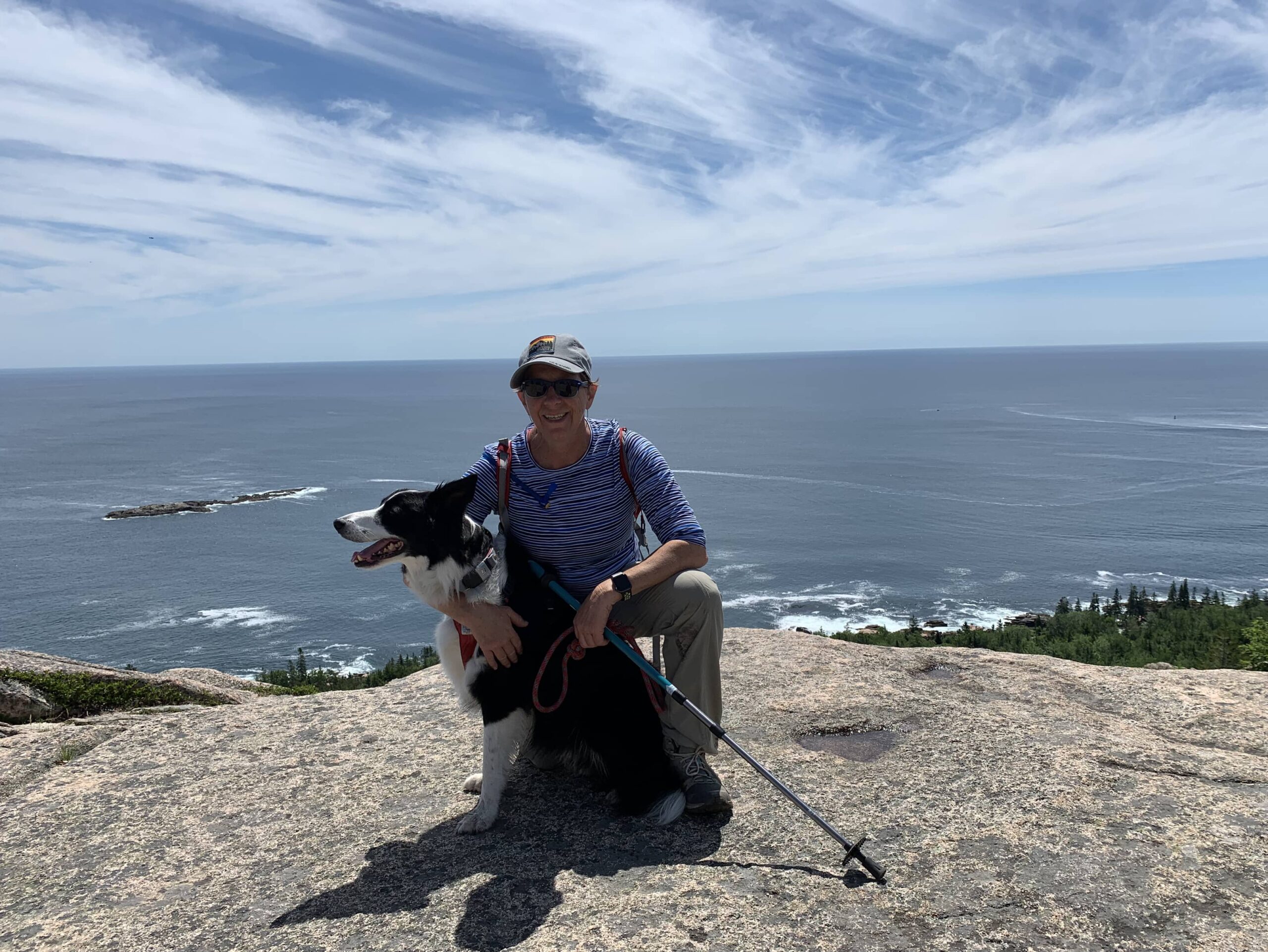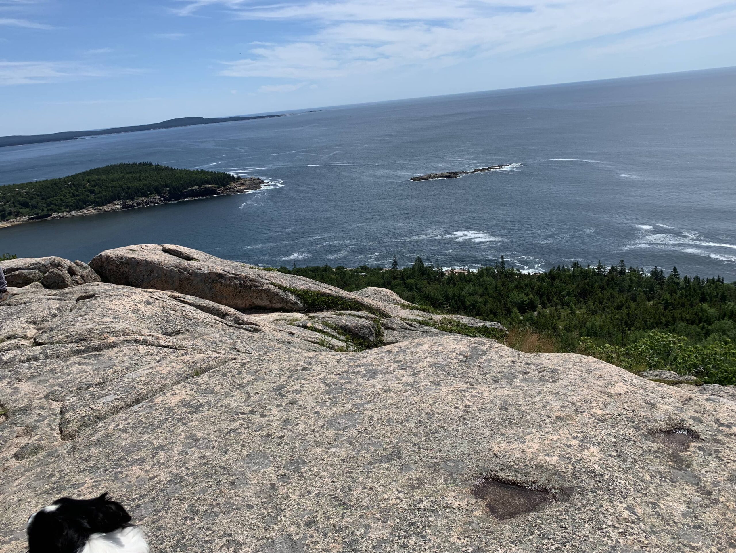 The first day we hiked the Gorham Mountain Loop Trail. This was a 3.5 mile trail which was moderate in difficulty, although when we took a wrong turn it became a little more challenging since I had to hoist Fred up a section with rungs. The summit views were nice and we met a nice group of women with whom we hiked down. Of course they loved Fred and we had some nice chats. Fred had a nice nap on the Island Explorer as it made the trip through the park and back to the parking lot.