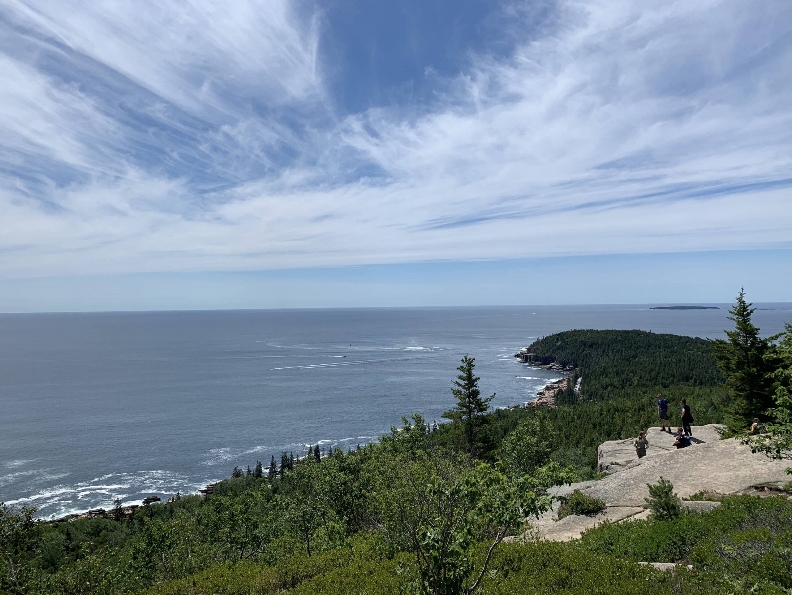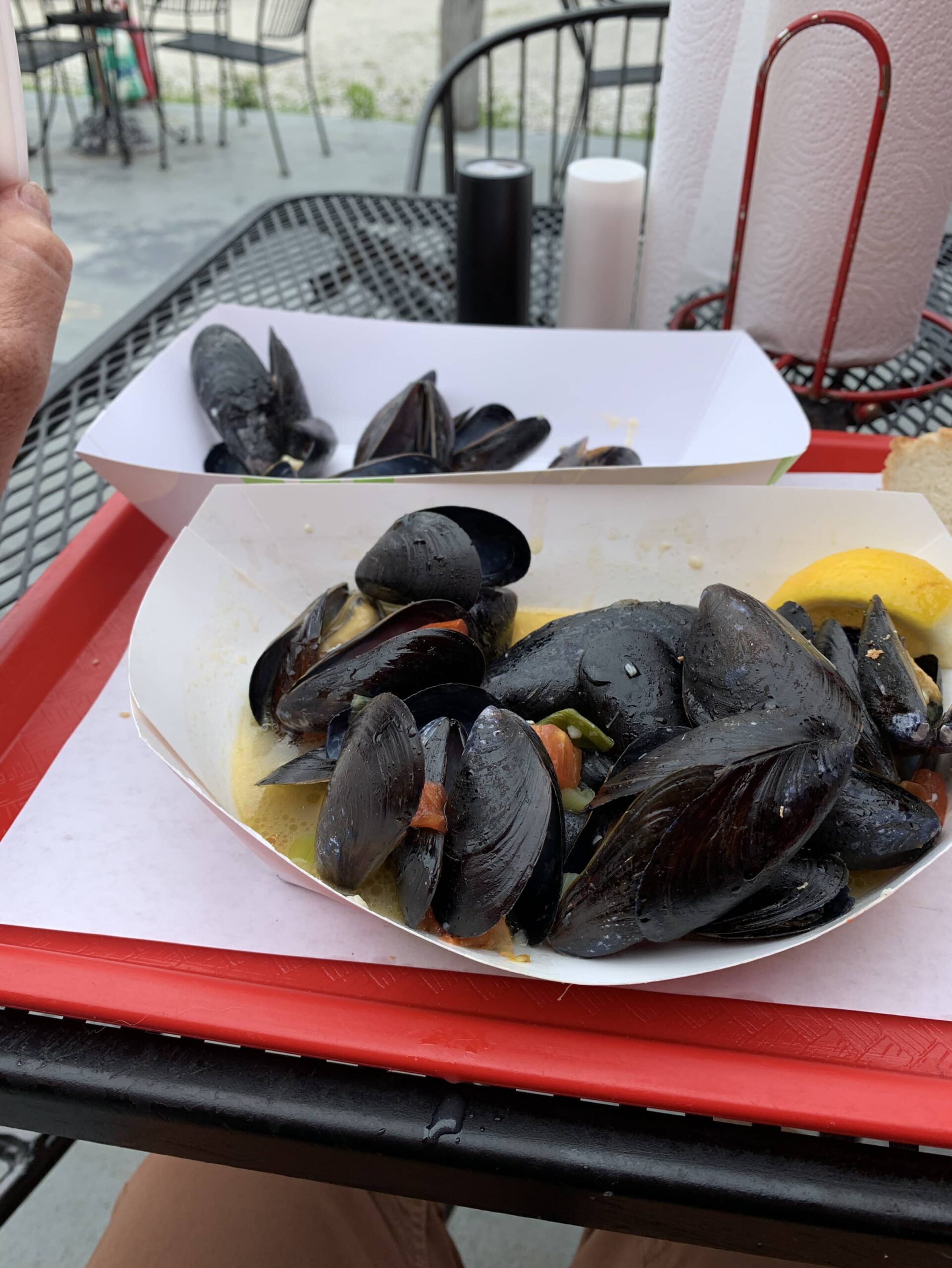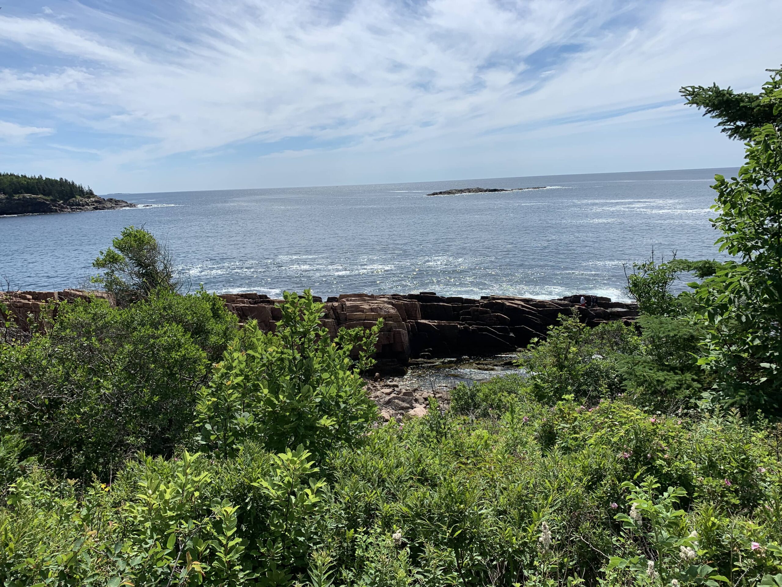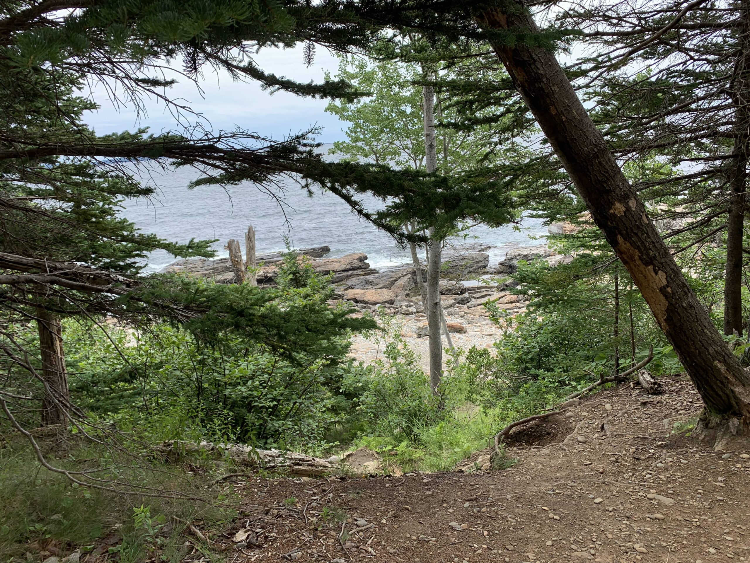 When we went back to Acadia later in the week, we hiked the Great Head Trail. This trail followed the coast along the cliffs and had some nice views. The hike back down was a bit challenging, but we got it done. After the hike, it was mussels for lunch, which Fred enjoyed much more.