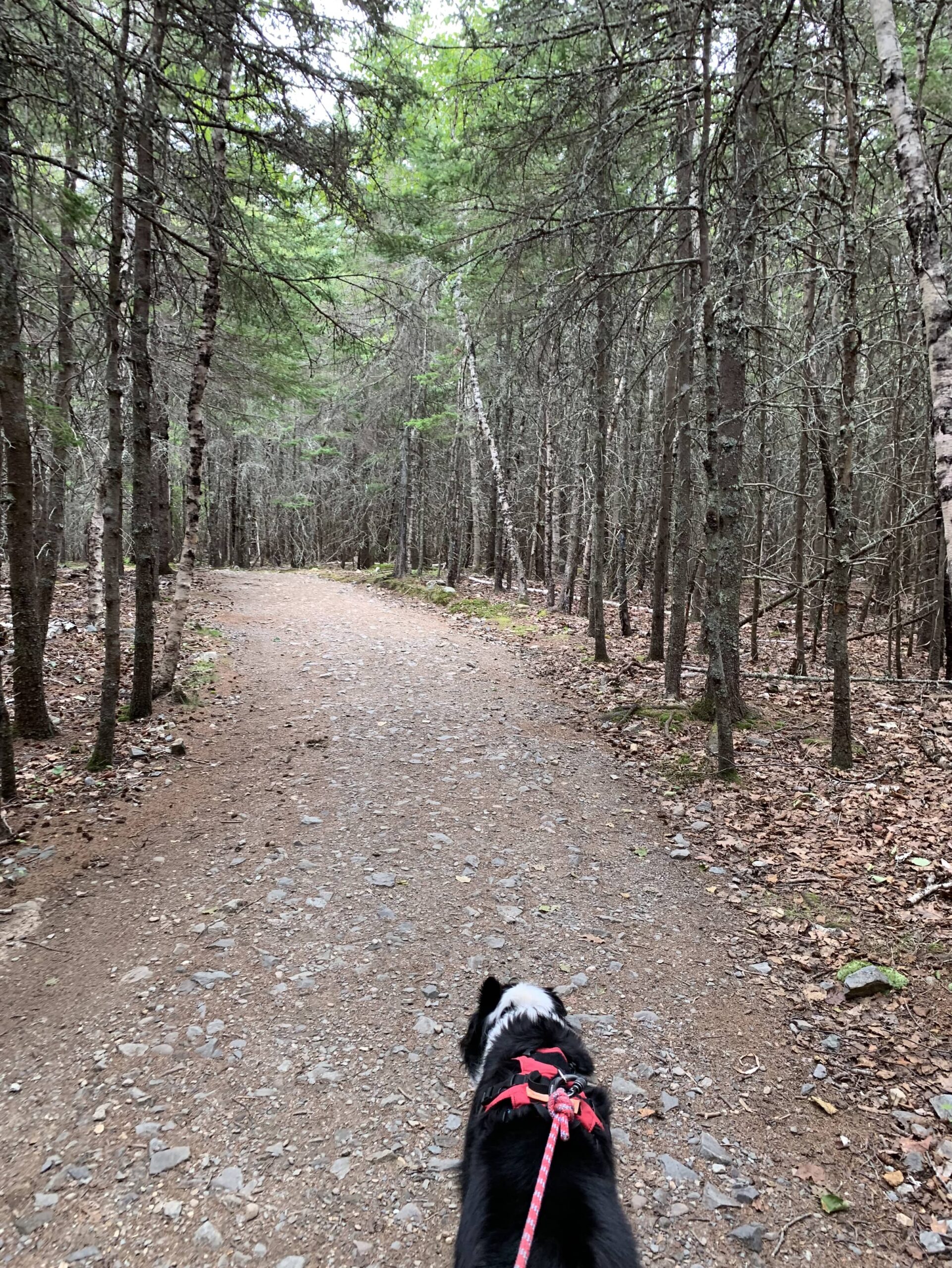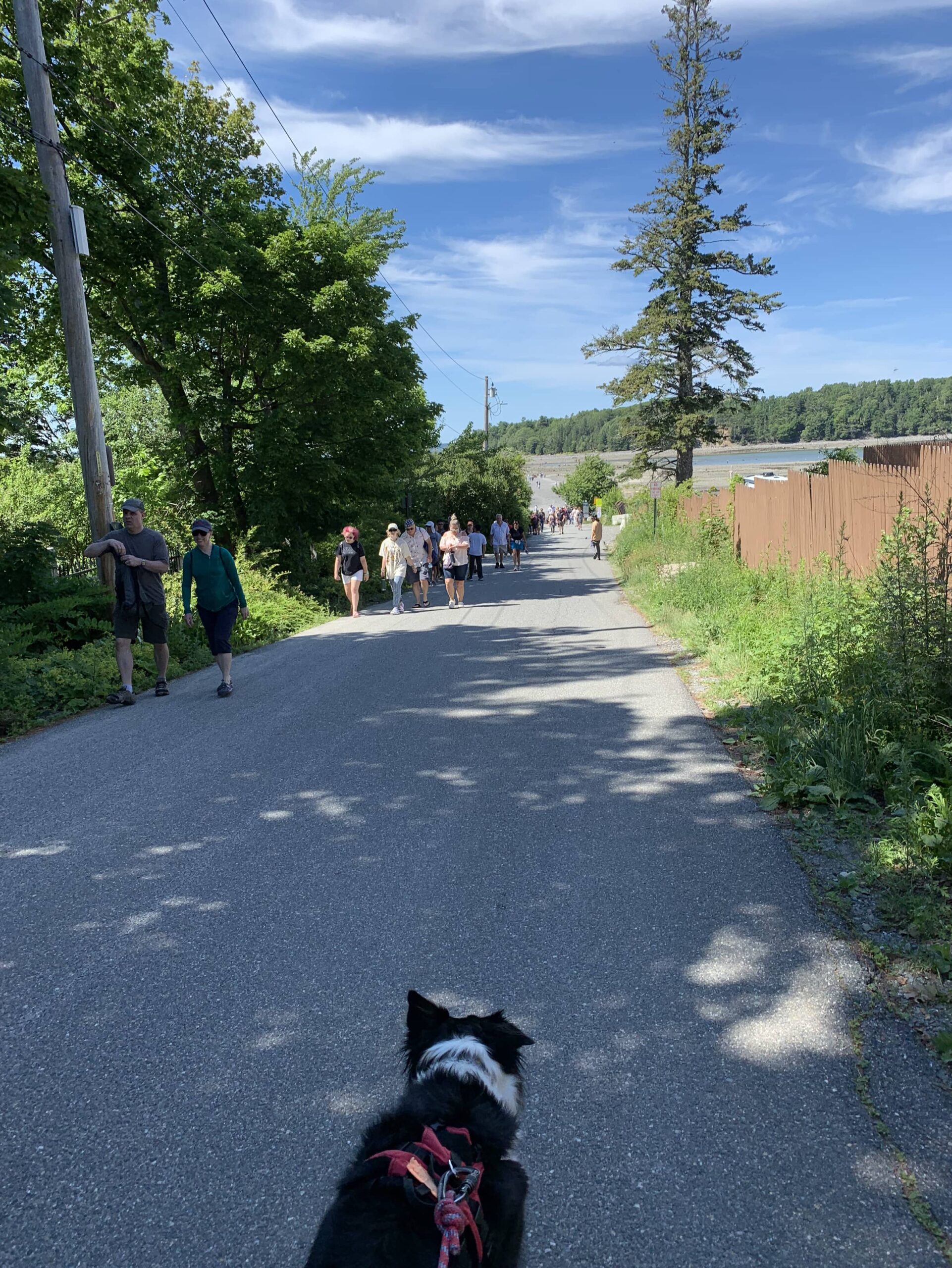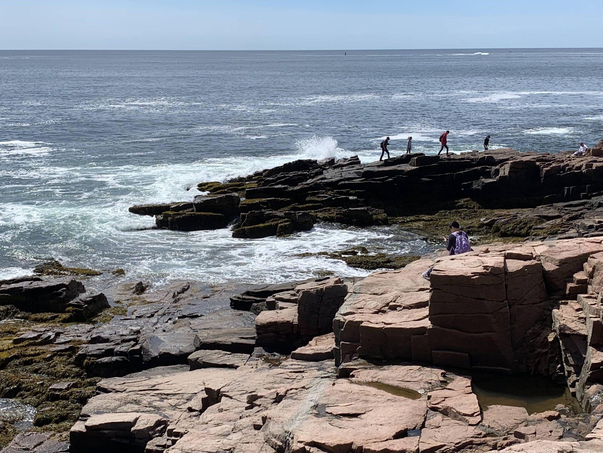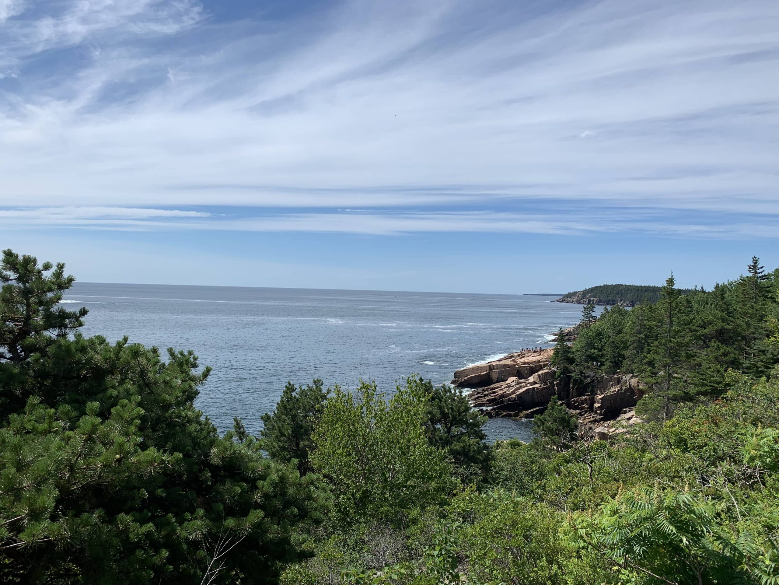 When we went back to Acadia later in the week, we hiked the Great Head Trail. This trail followed the coast along the cliffs and had some nice views. The hike back down was a bit challenging, but we got it done. After the hike, it was mussels for lunch, which Fred enjoyed much more.