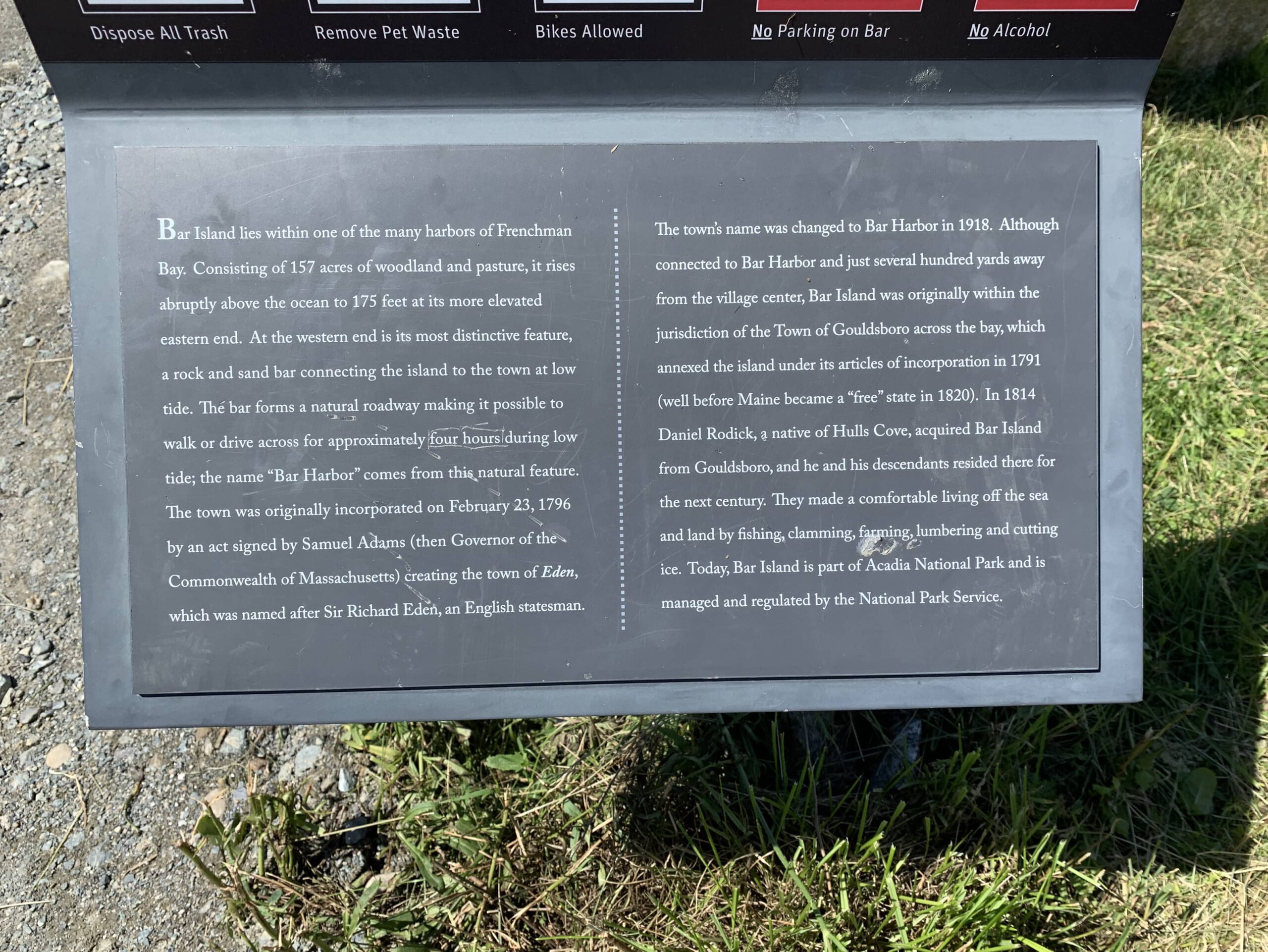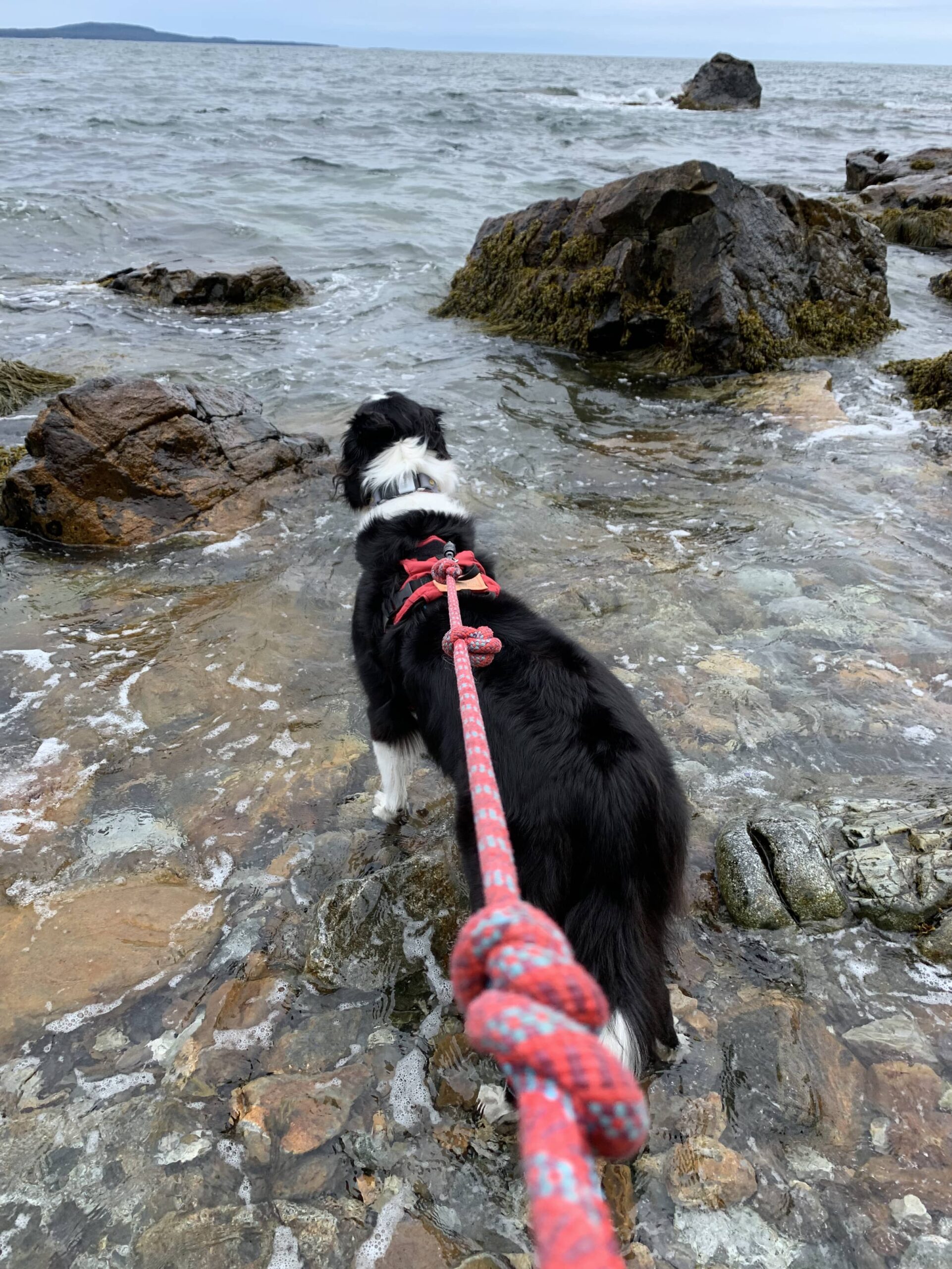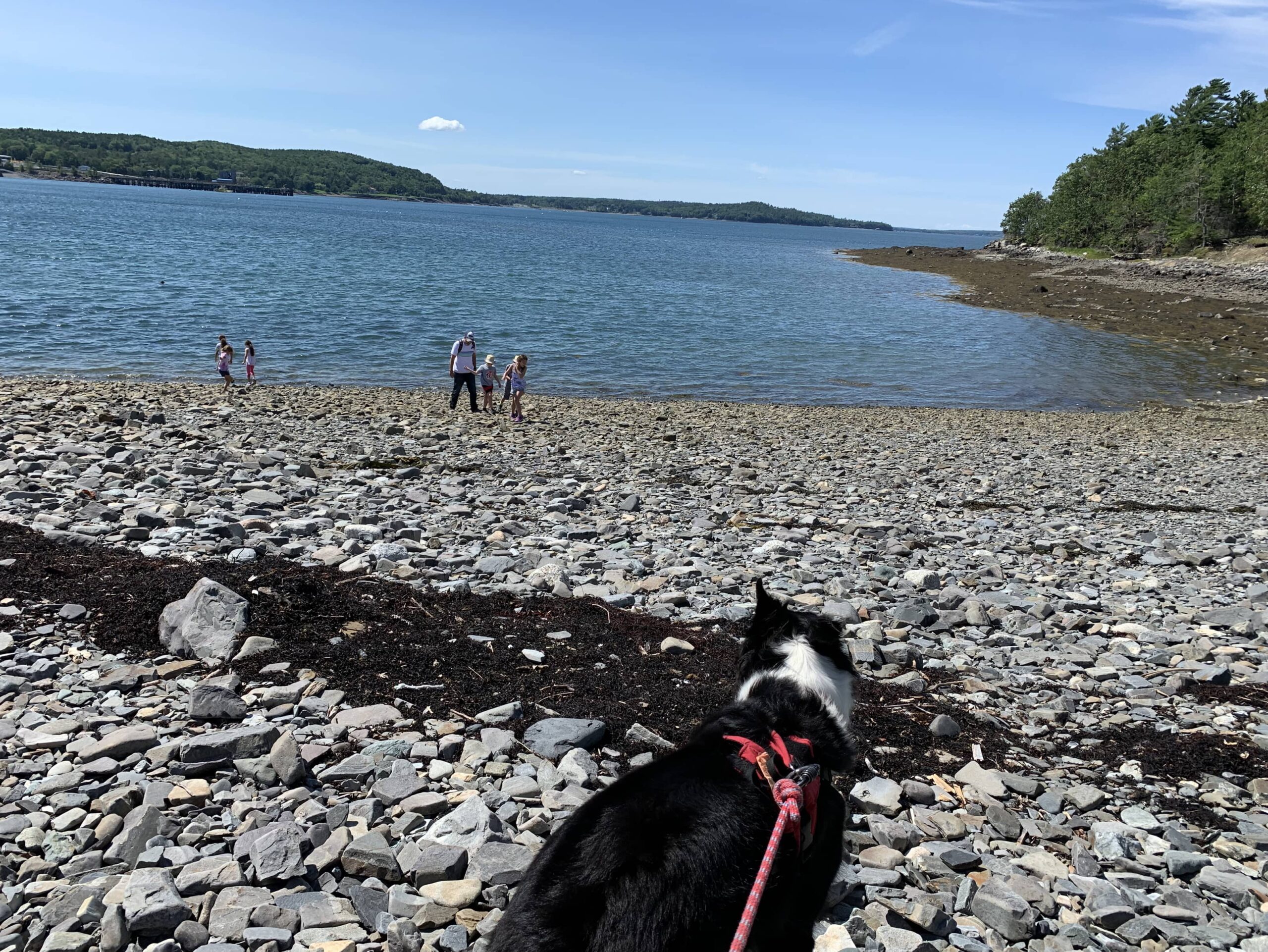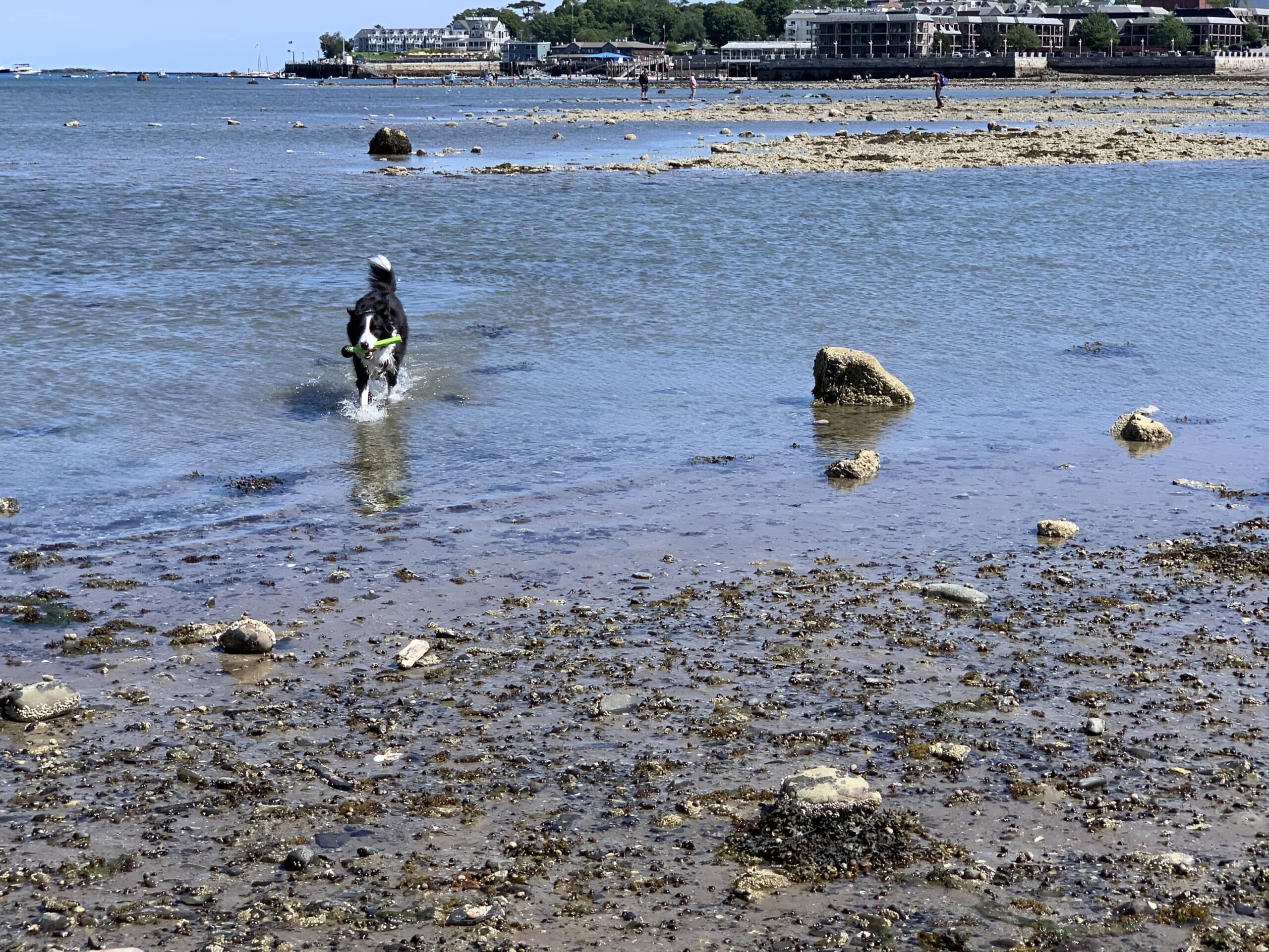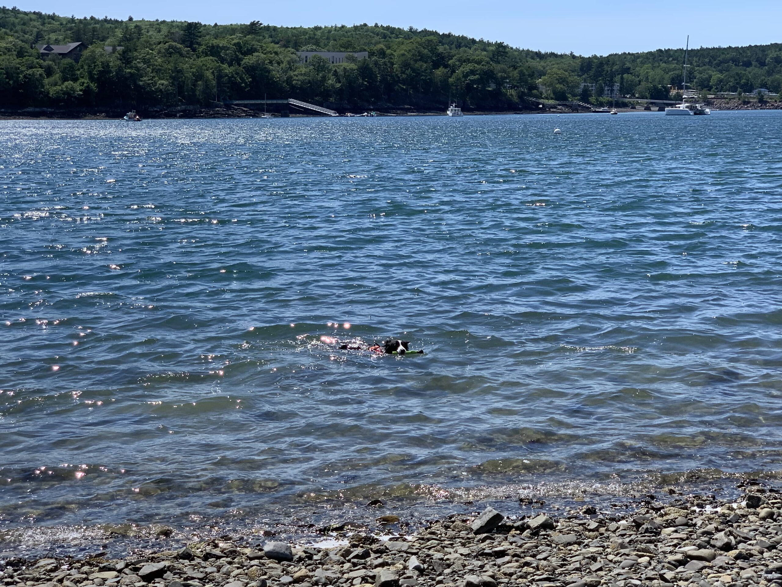 After the hike, we went into Bar Harbor. It was low tide so we got to walk out to Bar Island and Fred got a couple of swims in. It was our first time in salt water since leaving Florida and Fred thought that an unpleasant surprise when he first realized it.